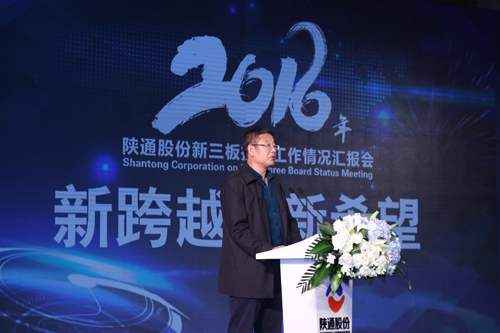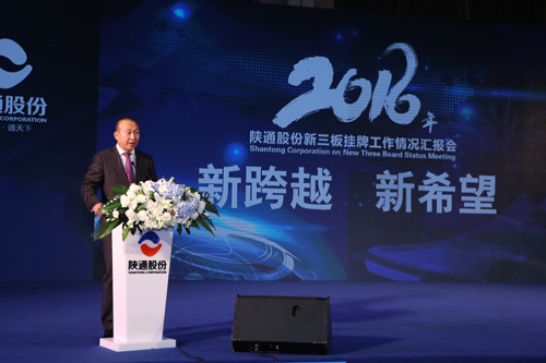 公司创始人、陕西百事通企业投资集团董事长王湧先生向大会致辞。王董在会议致辞中,与大家分享了三个感悟:一是清洁能源正在深刻地改变着世界,二是在这场变革中陕通股份的发展根基深植于民生建设,三是企业的发展壮大是能源体制改革带来的红利。王董认为,这三个感悟真切地来自陕通股份的发展特色,来自陕通人对企业当下的审视和对未来的展望。王董指出,公司挂牌意味着更大的平台,更高的起点,也意味着更重的责任,是契机,也是起点。这就要求陕通人进一步强化责任感和使命感,推动企业在发展理念、战略和管理上实现新的飞跃。陕通人将把产业发展定位与经济发展趋势紧密结合,将自身的项目投资与所在区域的发展融为一体,攻难克坚,互相促进,实现共赢,不辜负股东的信任,以更优异的成效回报社会。
