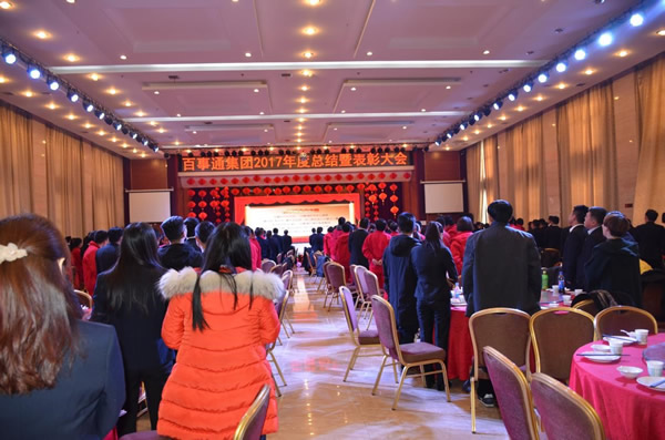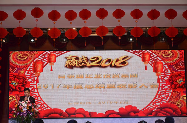 二〇一八年二月九日下午,陕通股份参加了控股股东百事通企业投资集团组织的“2017年度总结暨表彰大会”,本次会议在西安高陵区五福临门酒店隆重召开,集团领导、各公司员工及股东代表300余人参加了本次会议。