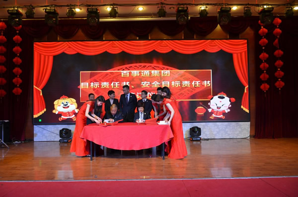 在鼓舞人心的颁奖环节后,举行了各公司目标责任书、安全目标责任书的签订仪式,先后由执行董事马亚利代表集团与各公司签订了目标责任书及安全目标责任书;陕通股份总经理刘强与其各子公司签订了目标责任书及安全目标责任书。