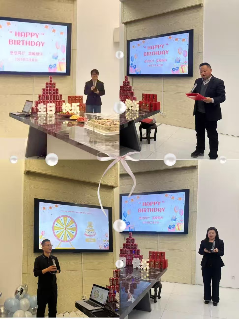 在温馨的气氛中,李少波、冯雄伟、王莹、张静四位寿星代表分享了自己在岗位上的感悟与生日感言,不仅表达了对公司平台和团队支持的感谢,更展现了员工们忠诚奉献、积极向上的精神风貌。